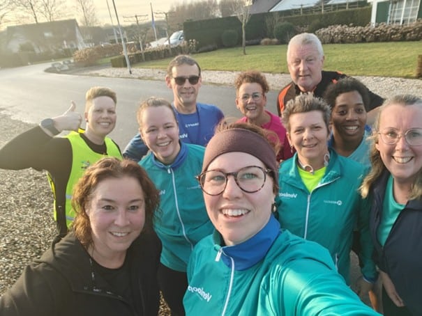 We hebben inmiddels flink wat trainingskilometers gemaakt. In het begin was het vooral wennen: aan het schema, aan het tempo en ook aan het vertrouwen in mijn lijf. Nu voelt het steeds normaler. Niet dat elke training een feestje is hoor, maar het is wel steeds meer ‘gewoon gaan en doen’. En ja… ik vind het oprecht leuk. Dat had ik een jaar geleden niet durven zeggen.